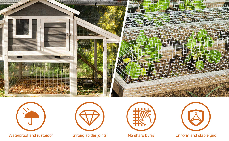 Perfect for gardeners and poultry keepers, it delivers multi-purpose protection: craft sturdy plant cages and garden raised beds, shield vegetables, fruits, and plants from small pests, build secure poultry enclosures, and guard young trees against predators.